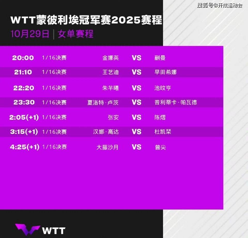 10月29日21:10,女单第一轮王艺迪VS日乒一姐早田希娜。与陈幸同一样,王艺迪也到了职业生涯末期,在洛杉矶奥运会之后,也就要退役了。女单王艺迪首轮硬仗成关键,陈幸同需突破欧洲选手围剿。