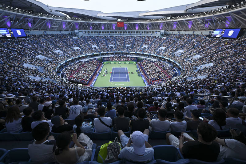 新华社照片,上海,2025年10月12日 这是10月12日拍摄的男单决赛现场。 当日,在2025年ATP上海网球大师赛男子单打决赛中,摩纳哥选手瓦舍罗2比1战胜法国选手兰德克内什,夺得冠军。 新华社记者 陈浩明 摄