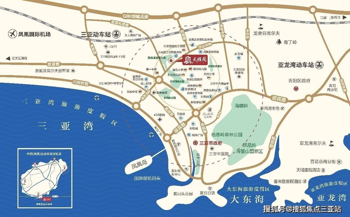 约3公里即达三亚高铁站,约4公里快速接驳环岛高速,约12公里直达凤凰国际机场,形成高效便捷的立体交通网络。
