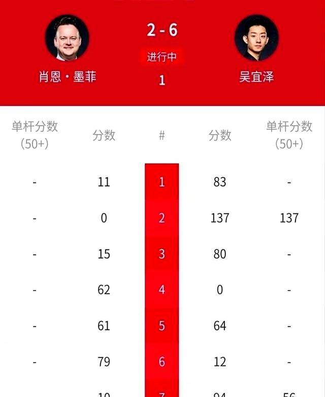 要说惊喜还得数吴宜泽和肖国栋。吴宜泽这小子才多大?直接把卫冕冠军墨菲给掀翻了!6-2的比分加上单杆137分,这哪是初生牛犊不怕虎,分明是骑着老虎耍杂技。更绝的是肖国栋,把塞尔比这样的战术大师治得没脾气,长台72%的成功率,安全球82%的命中,这数据看着就解气。两位中国选手偏偏还分在同一个半区,八强就要内战,这运气也是没谁了。不过转念一想,这不等于提前给中国锁定个四强名额吗?