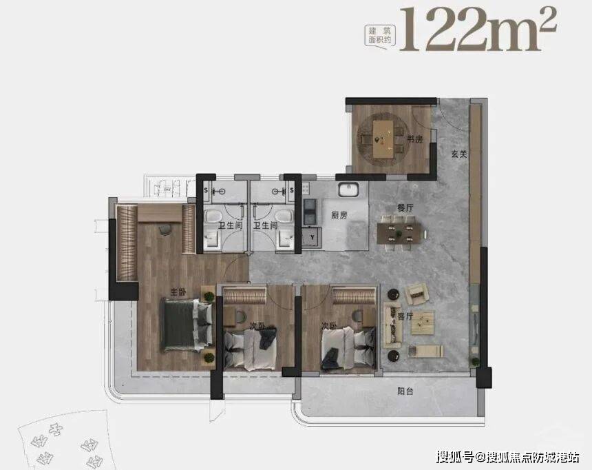 如果你对居住品质有更高的要求,追求更宽敞、更舒适的居住体验,那么122㎡的四房两厅两卫绝对能满足你的需求。这个户型总价708万起,定位改善型,空间宽敞,布局合理,细节设计到位,能给你带来不一样的居住体验。