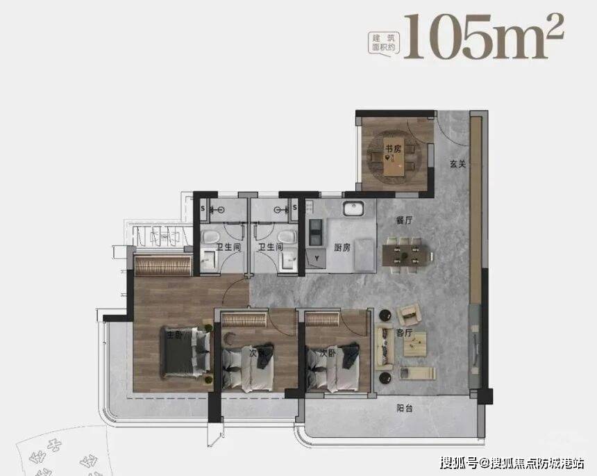 如果你的家庭人口较多,或者想一步到位,不用后期换房,那么105㎡的四房两厅两卫绝对是不错的选择。这个户型总价546万起,虽然比88㎡的户型稍贵,但空间更大,功能更齐全,能满足三口之家甚至四口之家的居住需求,而且得房率达到95%,空间利用率非常高,买下来一点也不亏。