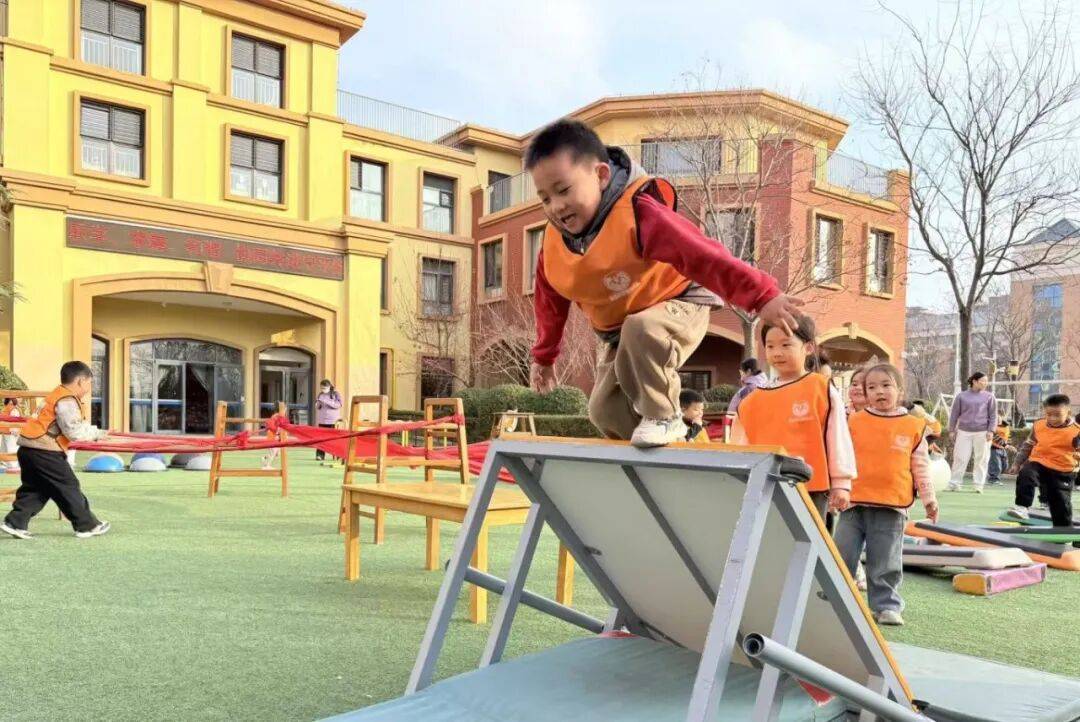 ▲昌邑市实验幼儿园打造“阳光户外2小时”运动品牌,以“趣味运动,健康成长”为核心,创设走、跑、跳、钻等分层挑战项目,融入安全课堂,鼓励幼儿自定规则、协作比拼。萌娃在户外场地奔跑跳跃,攀爬翻滚,笑声飞扬,用活力诠释运动促成长的真谛,让健康在游戏中扎根,在阳光下绽放!