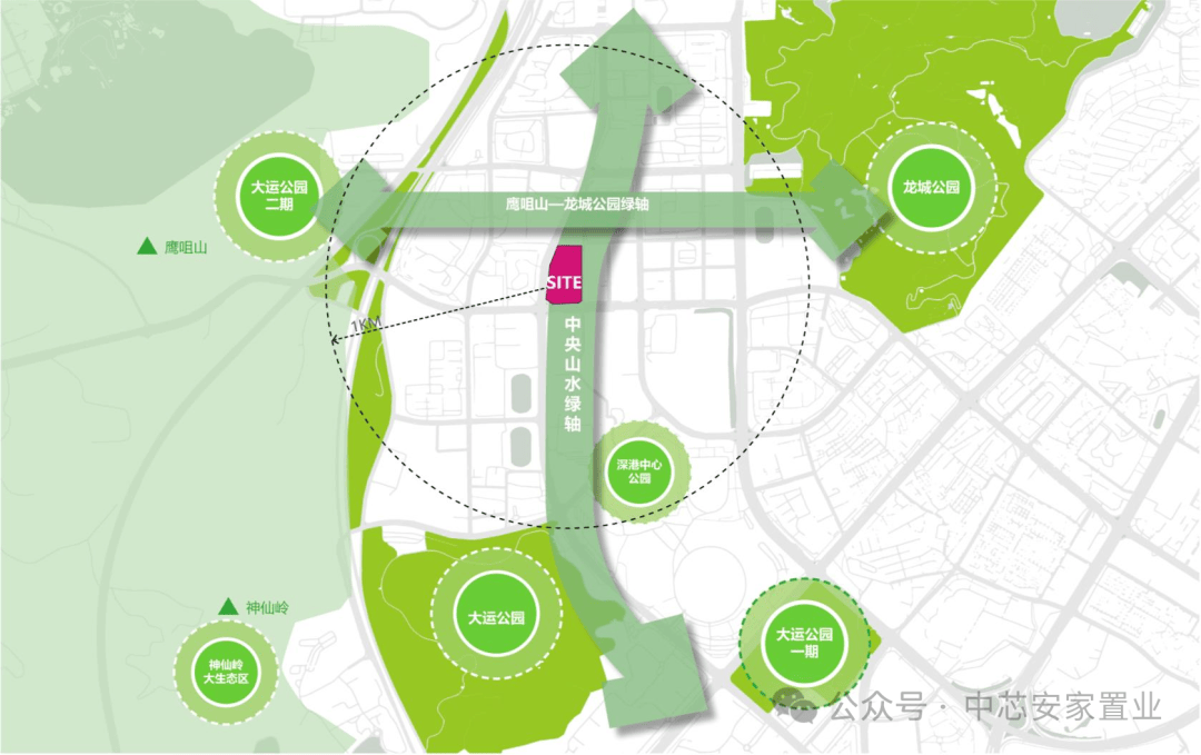 坐享大运公园(约418万㎡)、龙城公园(约189万㎡),环境优美,绿化率超50%,绿化率是福田中心的5倍、前海中心的4倍,是深圳首个“国家级生态示范区”。