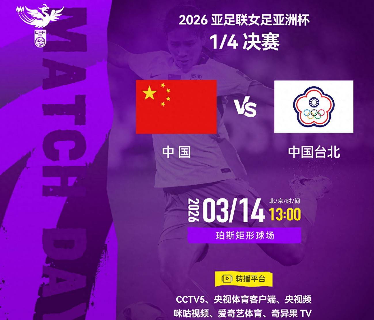 2026-03-19体育,足球,波胆,反波胆,角球,串关,大小球,世界杯,欧洲杯,比分,足球比分,赛事,足球赛事,电竞赛事,体育赛事直播,足球直播平台,世界杯直播,足球直播,体育直播,NBA直播,游戏直播,LOL直播各位球迷朋友们,晚上好!激动人心的时刻终于到来!就在北京时间3月14日的下午1点整,万众瞩目的2026年女足亚洲杯淘汰赛阶段的一场焦点之战将在澳大利亚的珀斯矩形球场震撼打响。卫冕冠军中国女足国家队将再次披挂上阵,迎战来自海峡对岸的中国台北女足。这场比赛,关系到中国女足能否顺利挺进亚洲杯的四强宝座,悬念十足,精彩可期!