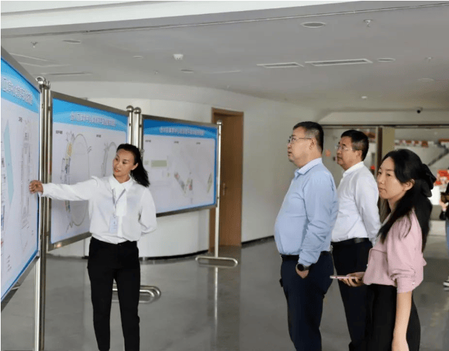 王金涛一行实地参观项目“一场两馆”及配套商业、酒店等区域。投资公司合川项目公司总经理姜世波从智慧场馆系统建设、商业筹开情况及全民健身推广等方面作相关介绍。